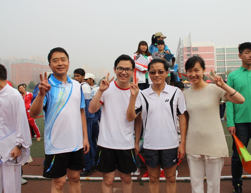 为了此次校运会,我院分工会成员17名,外教3名,齐齐上阵,甚至是平时腰有旧疾的同志,也绑上腰带上场。校运会期间,分工会小组每天安排专人准备水及能量补充物全程守候国际教育学院分工会休息站,负责参赛人员及啦啦队的后勤保障;拉拉队成员积极为参赛人员加油助威及提供后勤服务,哪怕是生病的同志也坚持到场。