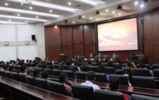 会议由国际教育学院程华初副处长主持,李江山院长宣读表彰决定。会上,廖端芳校长致辞,表达了对留学生们的祝贺和殷切期盼,马来西亚籍留学生庄贞毅代表获奖学生发表感言,表达了对母校的感谢。
