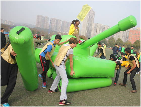 所有的参赛师生被分为14个队,进行了四轮紧张激烈的比赛。分别是“龙行天下”“十拿九稳”“铁甲战车”和“趣味接力”。在四个项目中,来自国际教育学院2013级外国留学生1队——“The Khans”,在四个项目中一共获得了三个第一,成为迎新运动场上的最大赢家。其他的代表队也分别取得了不俗的战绩。