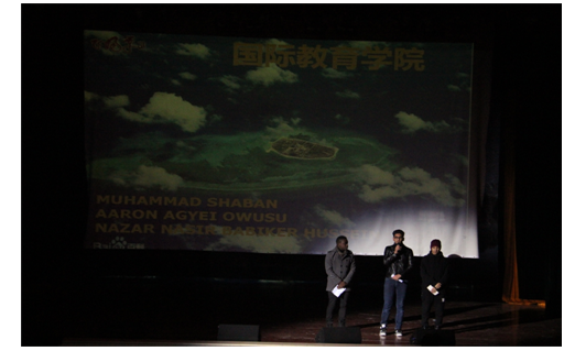 2015年11月26日,由校团委学习部主办的“师生最喜欢的书籍”推荐分享会决赛在大学生活动中心隆重举行。国际教育学院推选出的两支参赛队伍,在决赛舞台上的首次亮相,获得了观众的热烈掌声。这两支队伍分别是:由来自加纳的AARON AGYEI OWUSU、来自巴基斯坦的MUHAMMAD SHABAN和来自苏丹的NAZAR NASIR BABIKER HUSSEIN组成的留学生队以及来自台湾的蔡明晋代表的港澳台侨学生队。