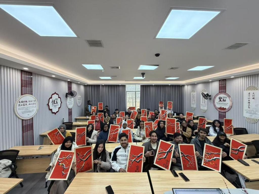 为加深国际学生对中国传统民间艺术的认知,学院特邀非遗传承人及青年国画教师,开设国画、糖画、剪纸等非遗技艺体验课程。课堂上,留学生们执笔蘸墨,绘制雪梅;执勺浇糖,制作糖画;持剪裁纸,剪出吉祥图案。在一笔一画、一剪一刻中,他们切身体悟中国艺术的精巧雅致与文化寓意,审美素养与动手能力同步提升。